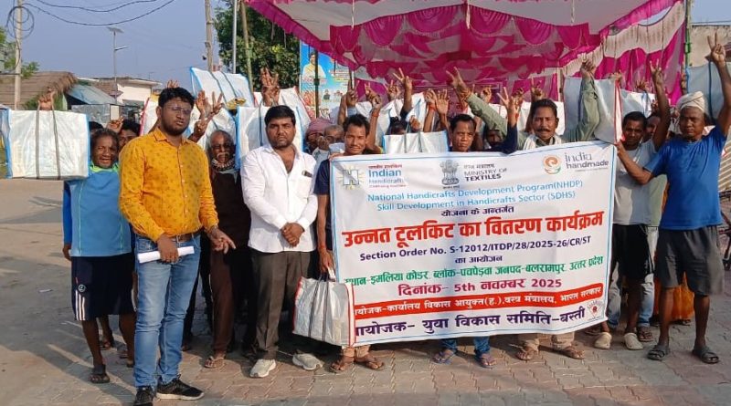 बलरामपुर।(मार्तण्ड प्रभात )। हस्तशिल्प वस्त्र मंत्रालय भारत सरकार के सहयोग से राष्ट्रीय हथकरघा विकास कार्यक्रम (एनएचडीपी) के तहत बलरामपुर जिले के पचपेड़वा विकास खंड के गाँव इमिलिया कोडर में जंगलों में रहने वाले आदिवासी समुदाय के काष्ठकला कारीगरों व हस्तशिल्पियों में 50 को उन्नत औजार टूल का वितरण किया गया।