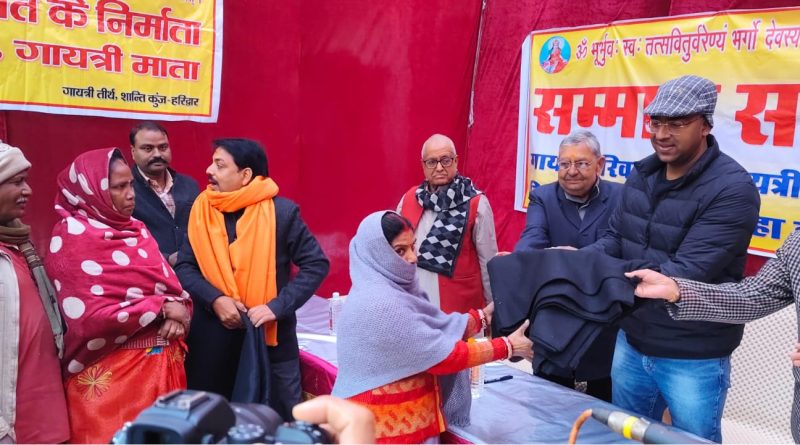 गायत्री शक्तिपीठ पर सम्मान समारोह , जरूरतमंदों में कंबल वितरण