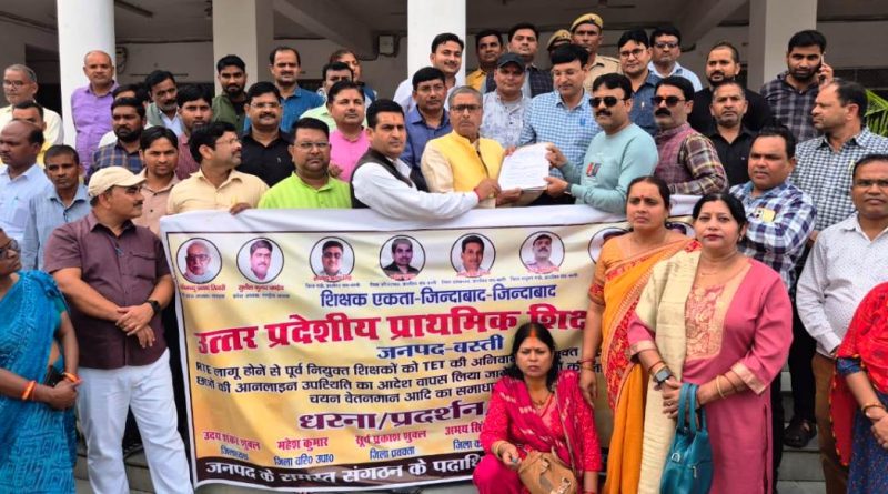 बस्ती(मार्तण्ड प्रभात)। शनिवार को उत्तर प्रदेशीय प्राथमिक शिक्षक संघ जिलाध्यक्ष उदय शंकर शुक्ल के नेतृत्व में शिक्षकों, संघ पदाधिकारियों ने प्रदेश नेतृत्व के आवाहन पर ऑन लाइन छात्रों की उपस्थिति, टेट अनिवार्यता से मुक्ति की मांग को लेकर उप जिलाधिकारी के माध्यम से मुख्यमंत्री को ज्ञापन भेजा। मांग किया कि समस्याओं का तत्काल प्रभावी निस्तारण कराया जाय।